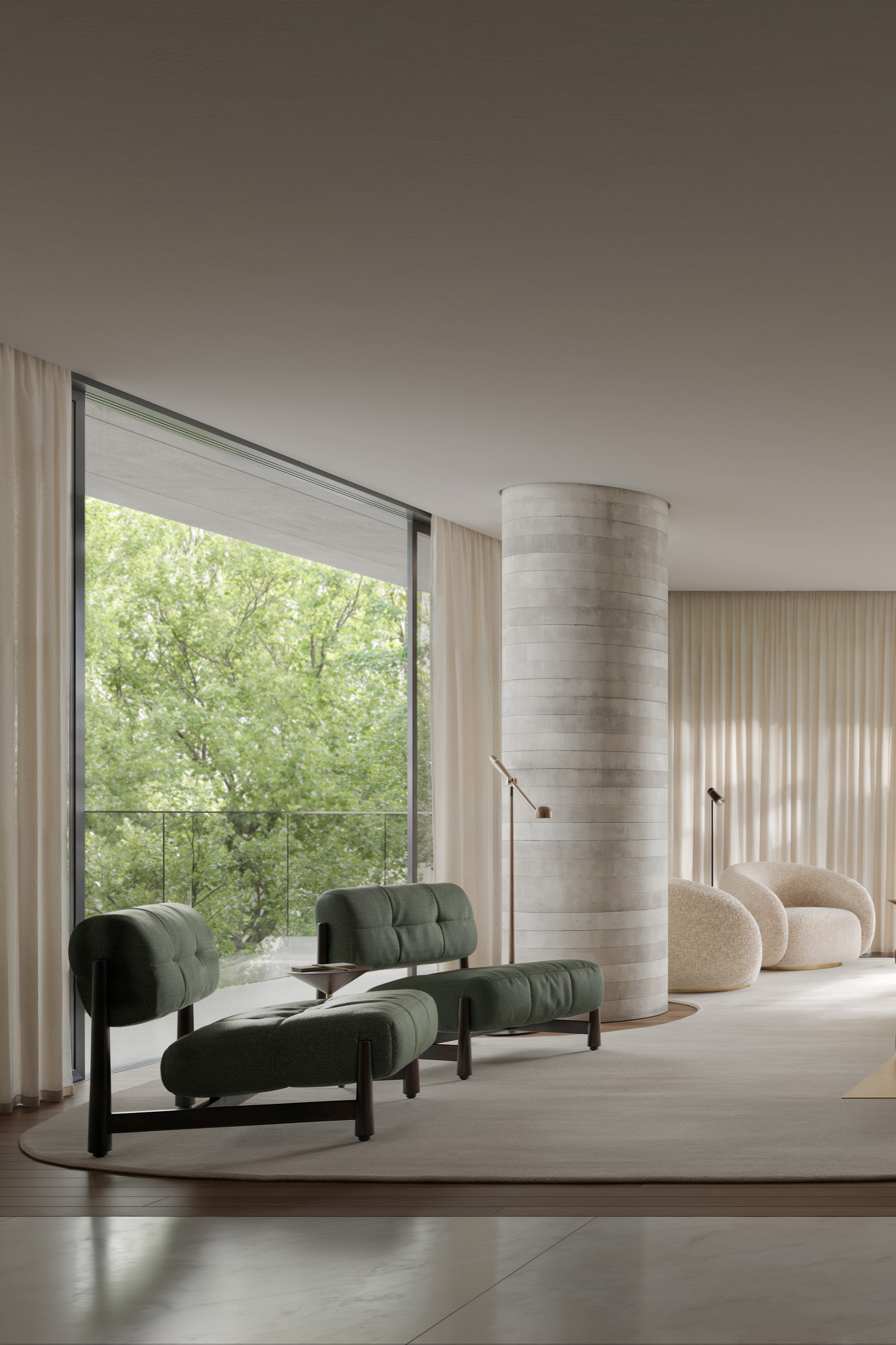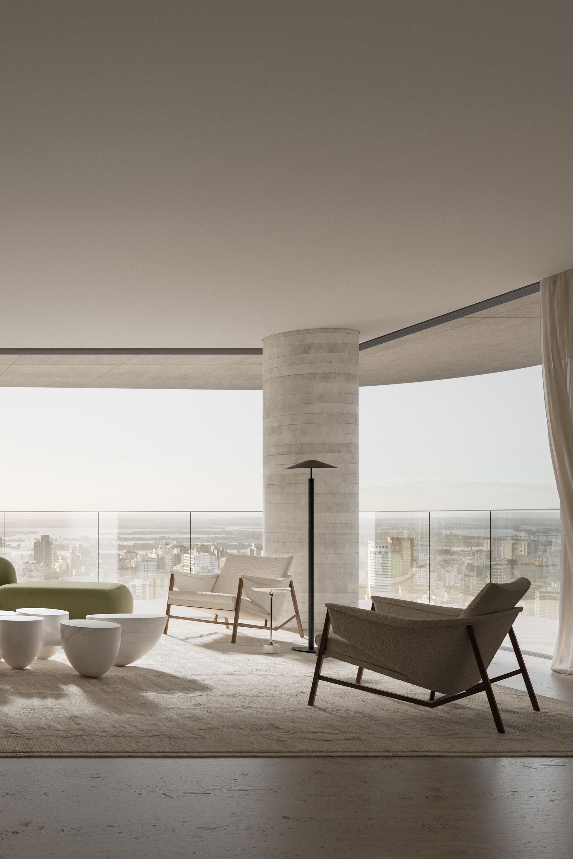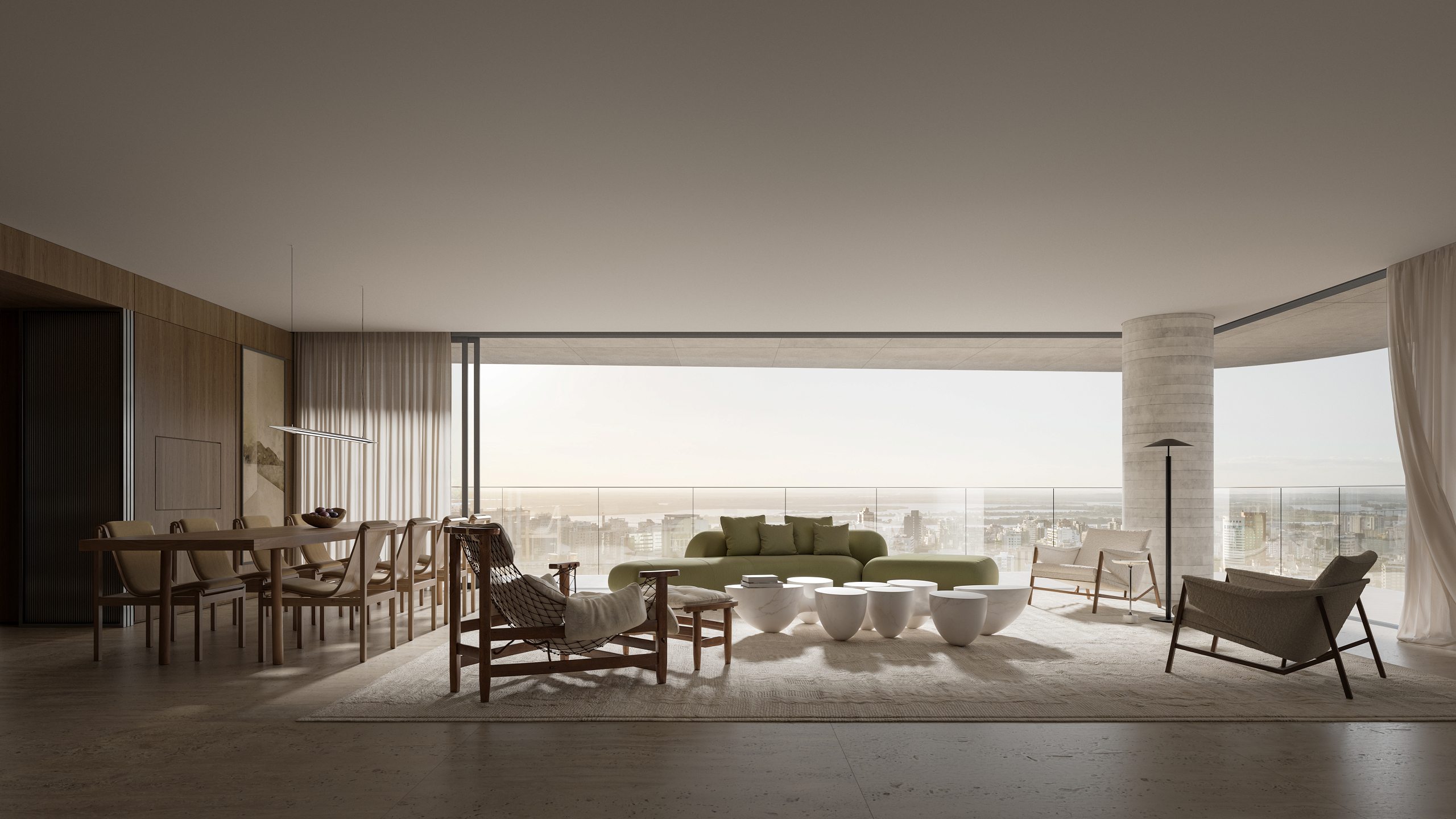 As linhas suaves e curvas são inspiradas na fluidez das orlas uruguaias, onde o azul do mar se confunde com o do céu e a arquitetura abraça a natureza como que sem costuras, querendo fazer parte dela. Uma beleza potente e ainda assim sofisticada, que brinca com a amplitude das aberturas e da iluminação ritmada pela luz do dia, com vidros curvos que elogiam a localização e a paisagem: esses são aspectos marcantes do Brava.