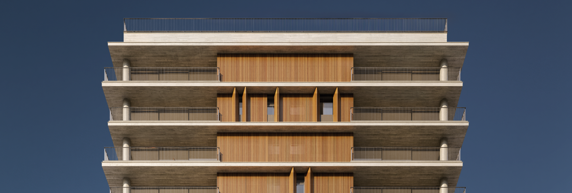 No Mansa, a sofisticação não se impõe. Ela se manifesta com naturalidade no concreto aparente em harmonia com os brises amadeirados, na presença do vidro e na proporção equilibrada dos espaços. É um projeto que entende que elegância verdadeira está na excelência, não no excesso — e que bem-estar começa na forma como se vive o espaço.